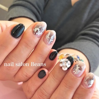 ブラック×シルバーのハードなデザインですが、ビジューを付けると女性らしさとミックスされいい感じですね✨